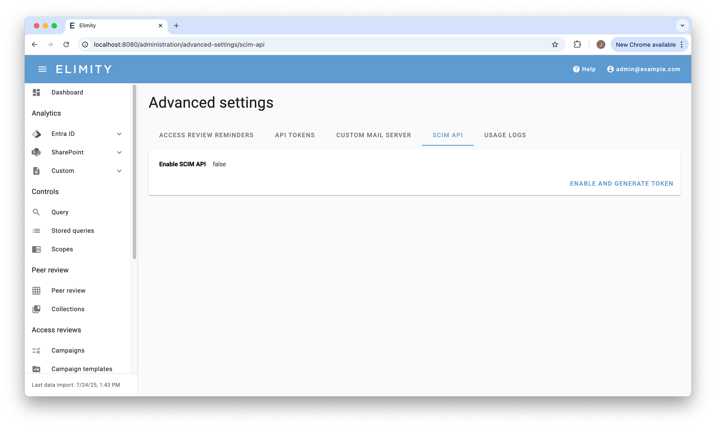 Authorization: Bearer {token}Use the 'SCIM API' tab on the 'Advanced settings' page to generate this token: